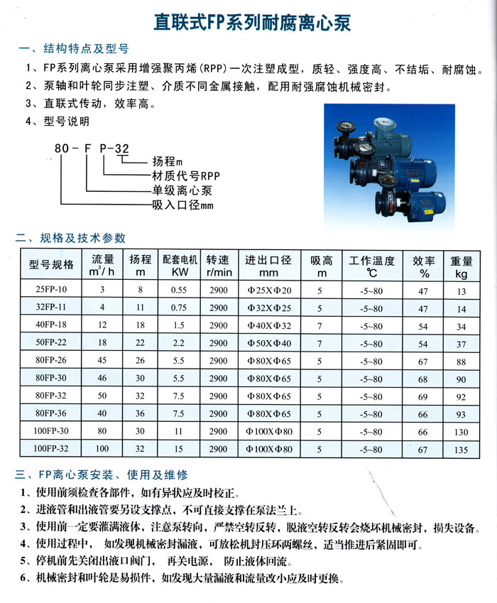 產(chǎn)品名稱: 直聯(lián)式FP系列耐磨離心泵